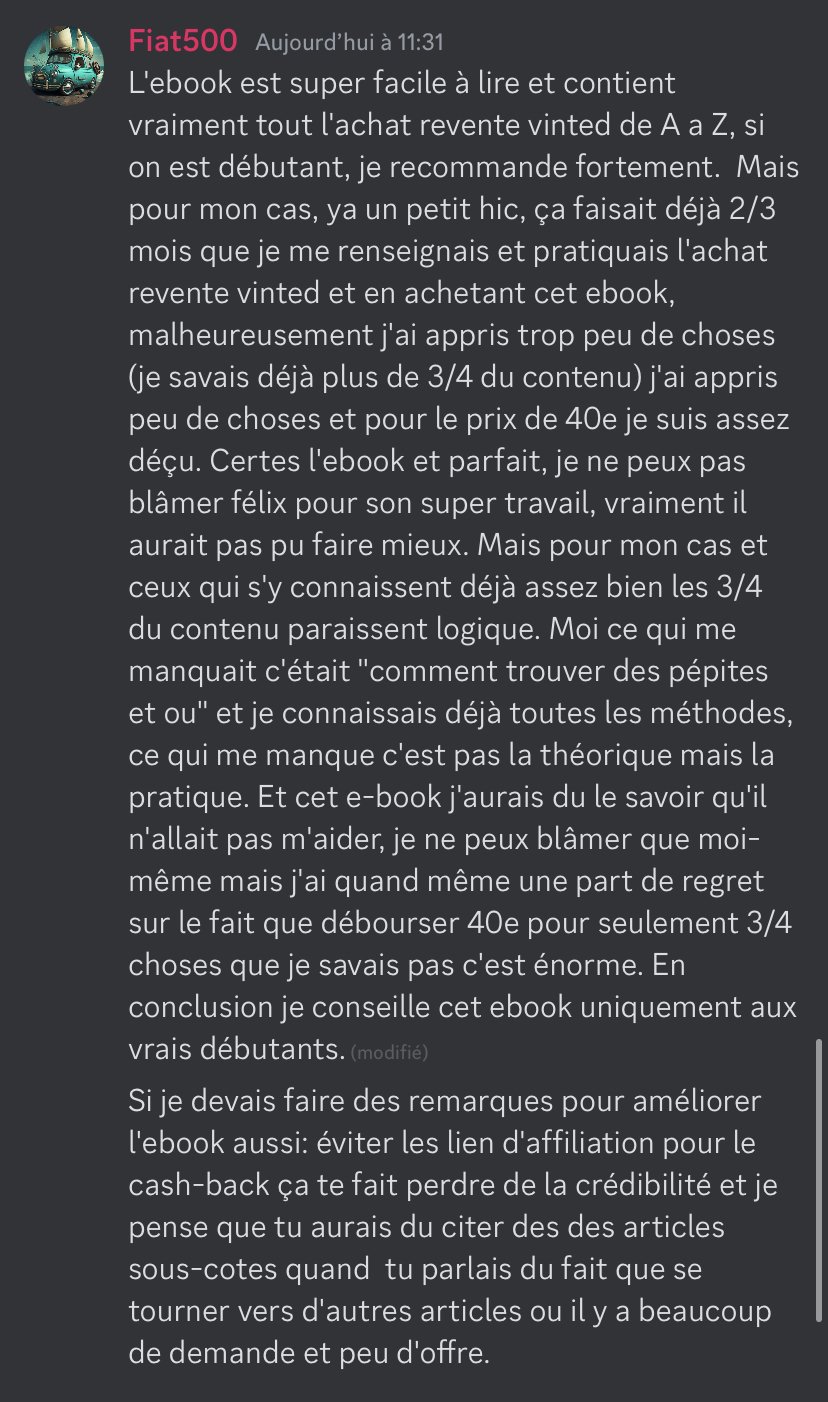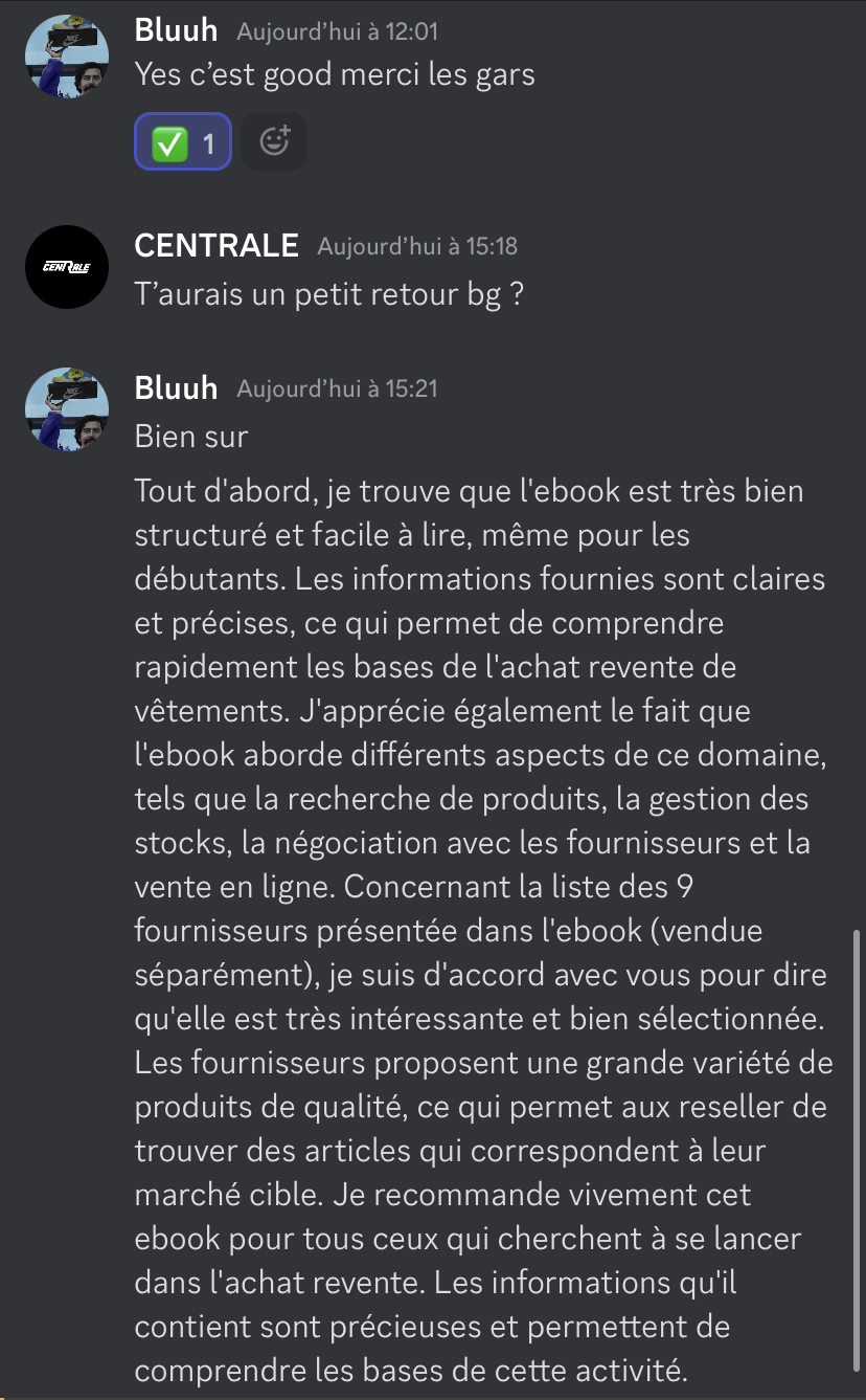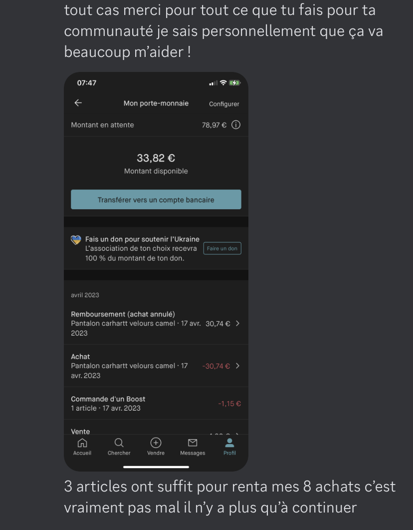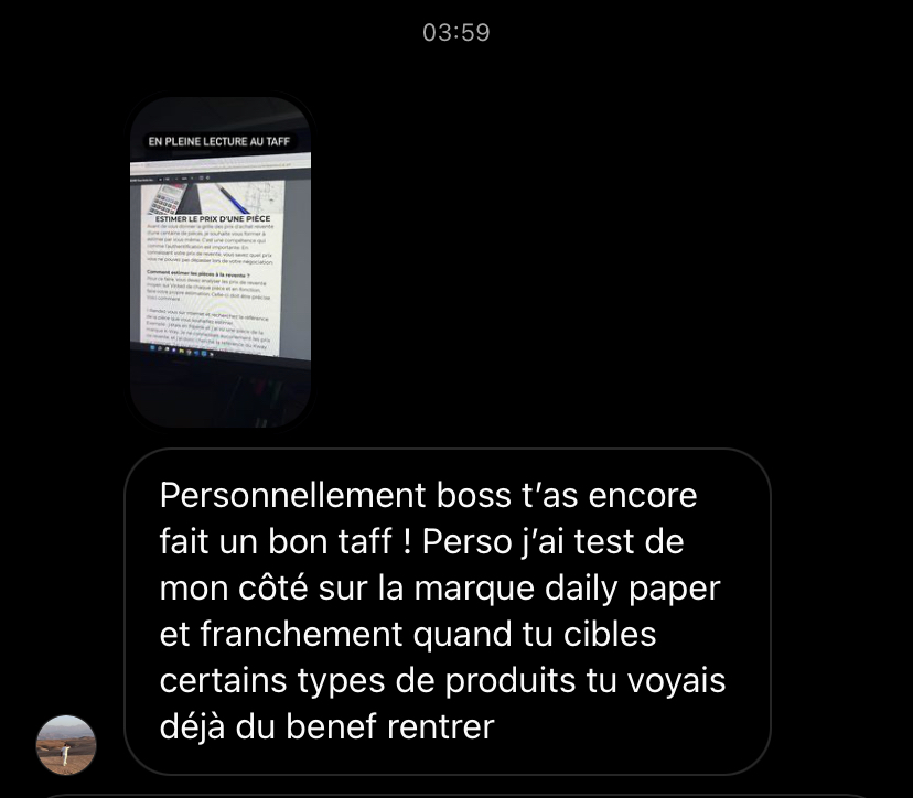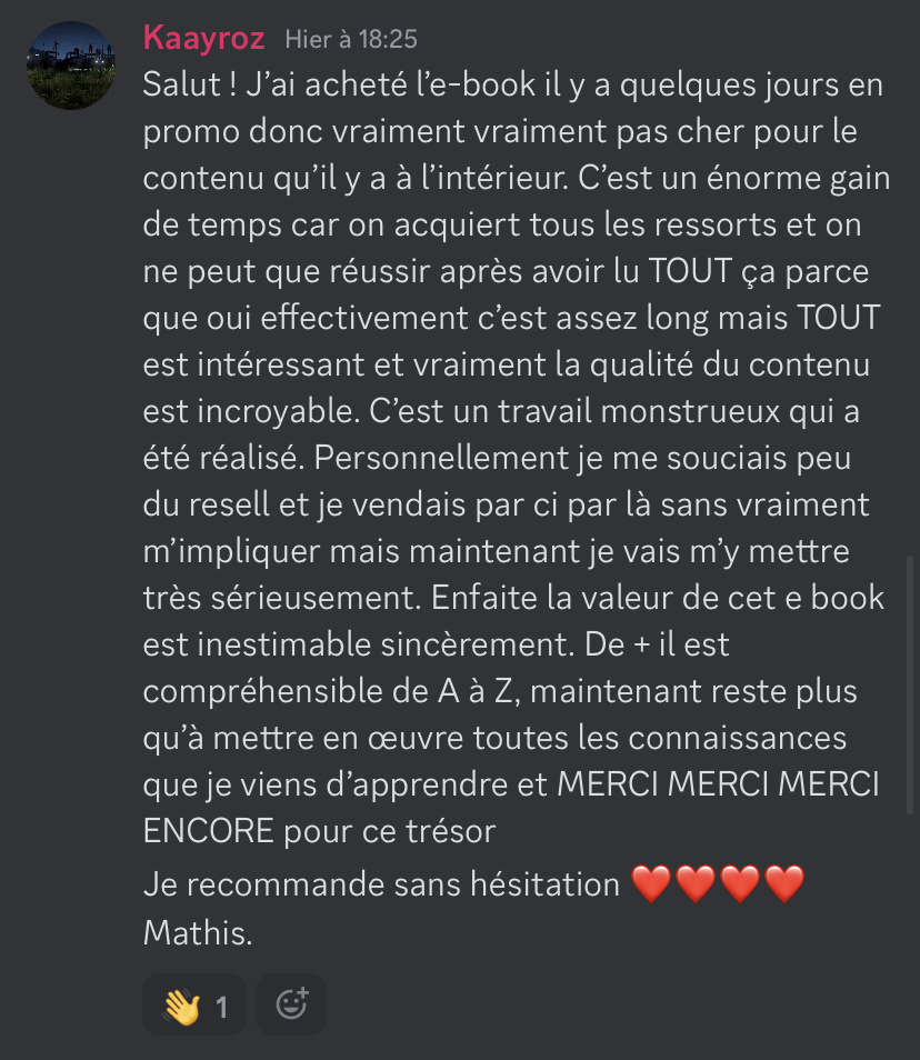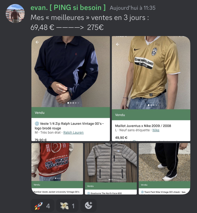 Aujourd'hui, à travers mon contenu gratuit sur YouTube, mon groupe Alert Vinted ou encore mon Ebook, j'ai pu aidé des milliers de revendeurs à se lancer et à avoir des résultats conséquents dans ce domaine.