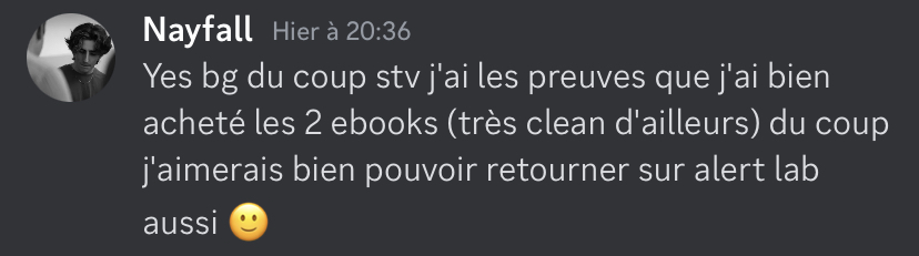 Merci de nous indiquer ton adresse mail avec laquelle tu as passé commande. Toutes les entrées sont vérifiées manuellement, ce qui engendre un léger temps de vérification ✅